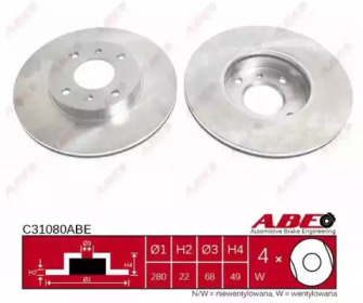 ABE C31080ABE диск торм пер Nissan Almera (N16) Primera (P11) 280mm вент - *.** В Корзину